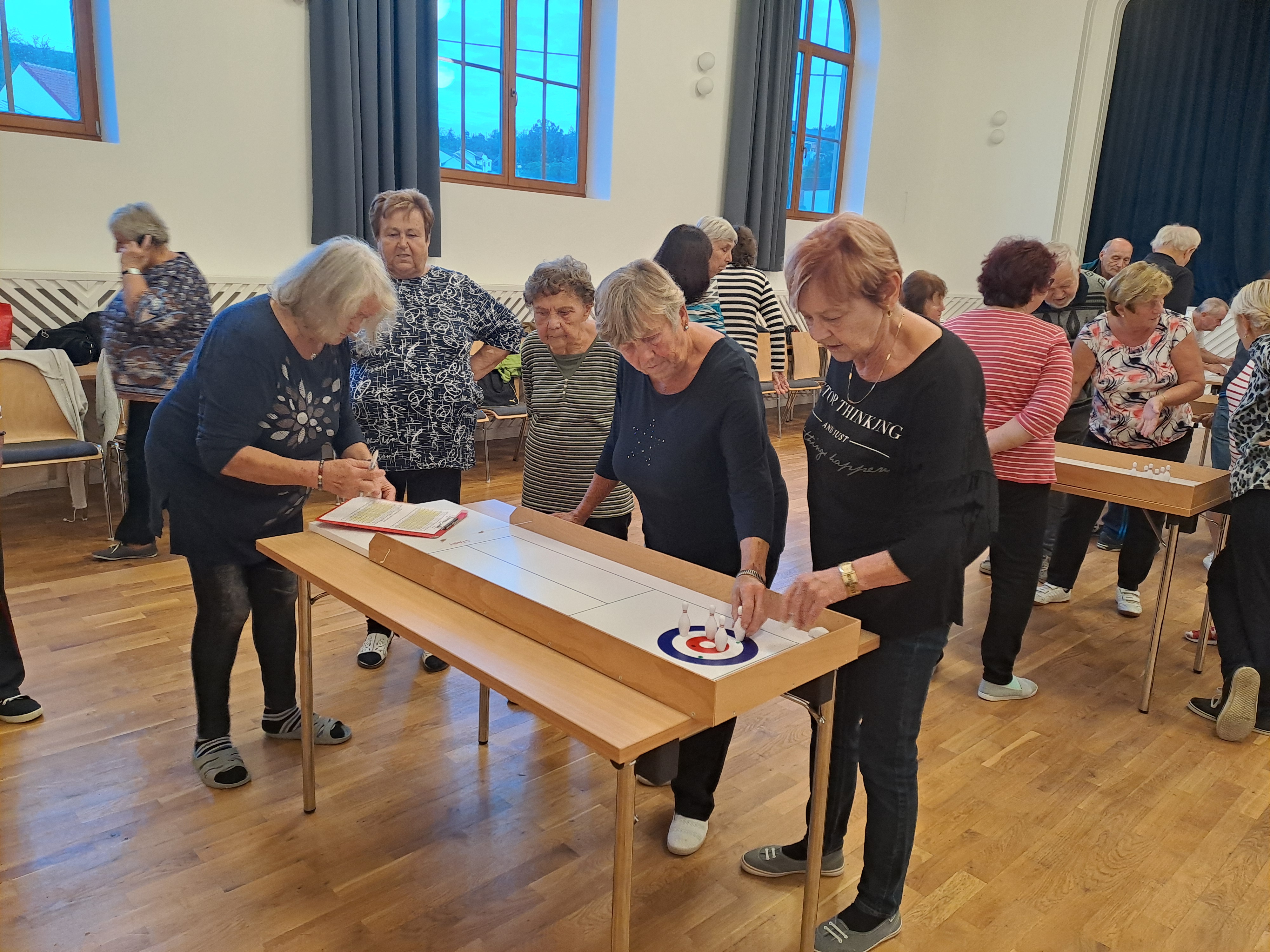 V letních měsících se scházíme na hřišti místního Sokola a za nepříznivého počasí nebo v zimním období v sále našeho Kulturního domu, kde se většinou hrají stolní hry. Na tyto hry se velmi těšíme, protože si pěkně popovídáme, a hlavně máme v sobě soutěžícího ducha a k tomu hodně pohybu. Zde člověk pookřeje a především ti, kteří jsou již sami.