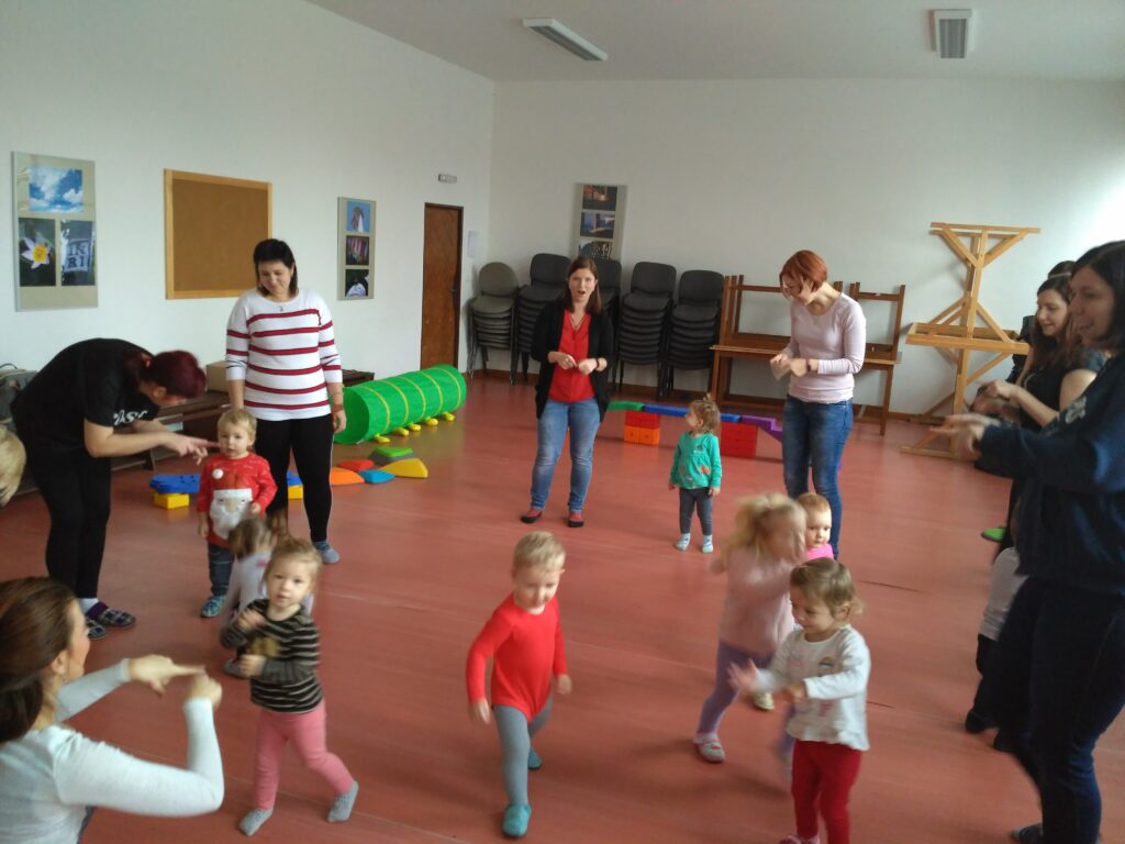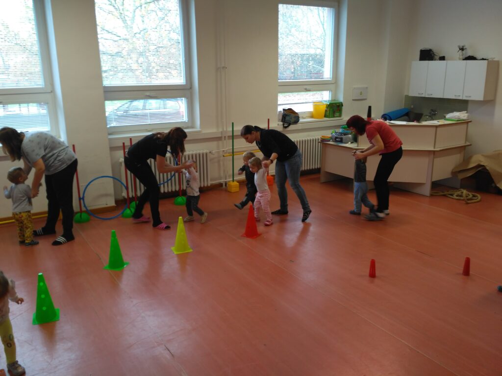 Další ze série kroužku pro naše nejmenší. Jak už název napovídá je především o pohybu, cvičení a souhře matka a dítě. Jelikož v tomhle věku je dítě hodně nejisté a potřebuje získat oporu. V kroužku se proto učíme různé říkanky, hrajeme hry, učíme se jak dítěti dodat odvahu.