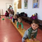 Další ze série kroužku pro naše nejmenší. Jak už název napovídá je především o pohybu, cvičení a souhře matka a dítě. Jelikož v tomhle věku je dítě hodně nejisté a potřebuje získat oporu. V kroužku se proto učíme různé říkanky, hrajeme hry, učíme se jak dítěti dodat odvahu.